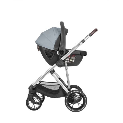 Включени аксесоари: Покривало за крачета на седалката и коша за новородено, адаптори, чанта.
