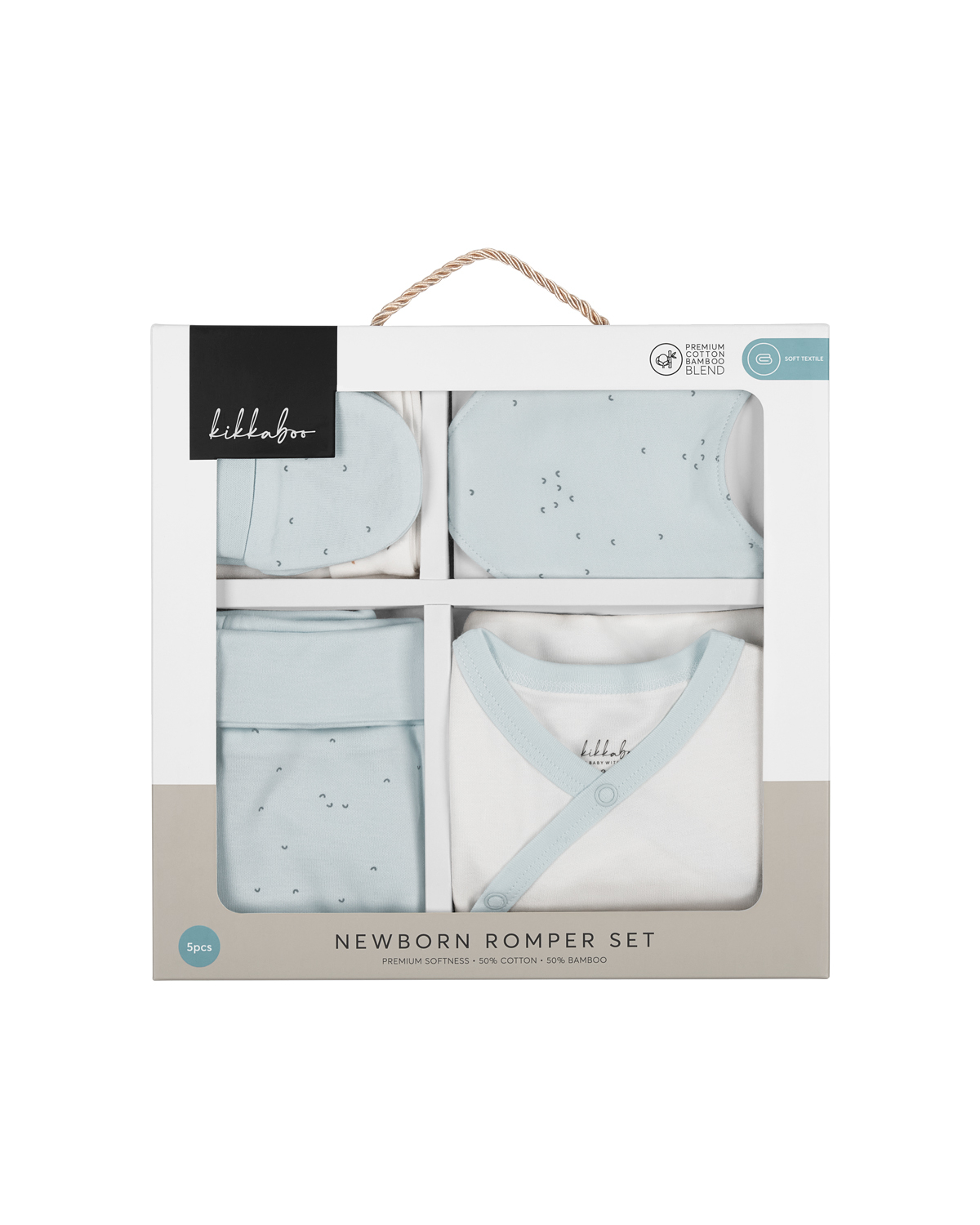 • Включва необходими дрешки за първите дни на бебето: ританки, боди с дълъг ръкав, шапка, ръкавички, лигавник;