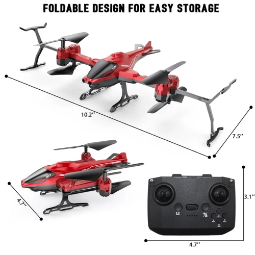 Червеният сгъваем дрон на Crazon с камера и сензори за препятствия привлича внимание със своя ярък, енергичен дизайн и стабилно поведение във въздуха. Събран в компактно тяло и оборудван с функции, улесняващи управлението, той е перфектен избор за вълнуващи въздушни игри и нови приключения.